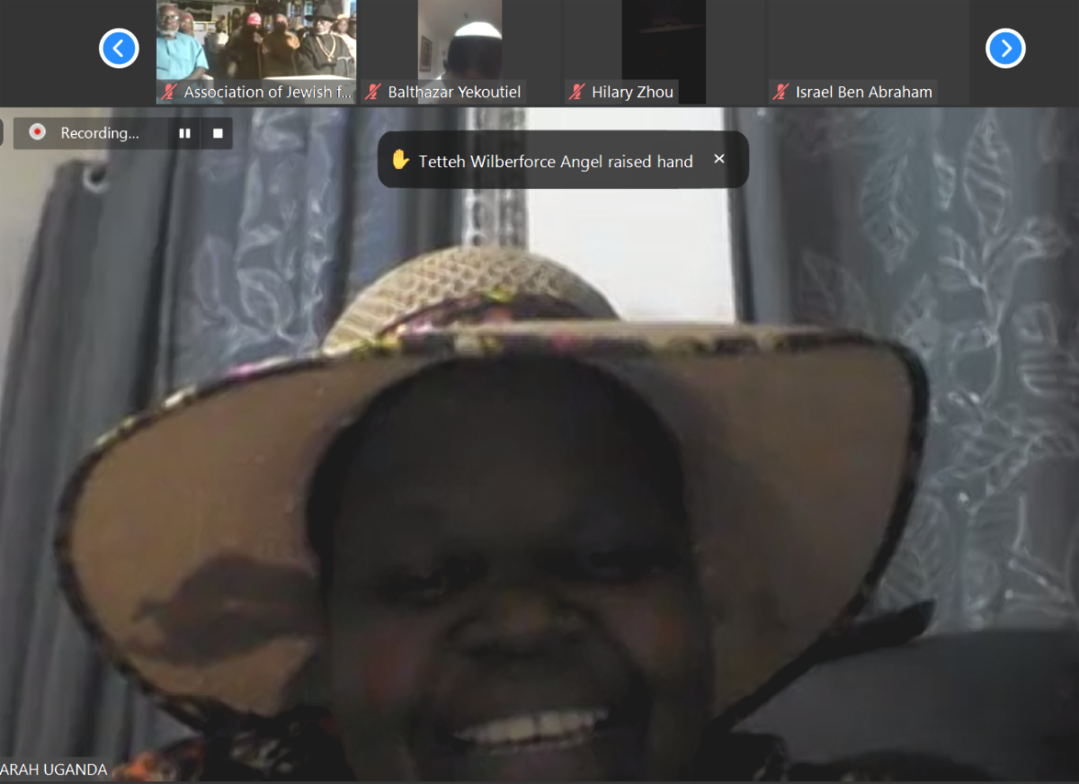 On December 10, Kulanu brought together the participants from the Sub-Saharan African Jewish Conference for a reunion on Zoom. The group of 41 screens, with a few communities meeting together, learned more about Torah reading, shared updates, and lit the menorah together – one year after doing so in person last year in Côte d’Ivoire. Pictured here is Sarah, the Vice President of the Sub-Saharan Jewish Alliance (SAJA), sharing an update from the community economic and development working group.