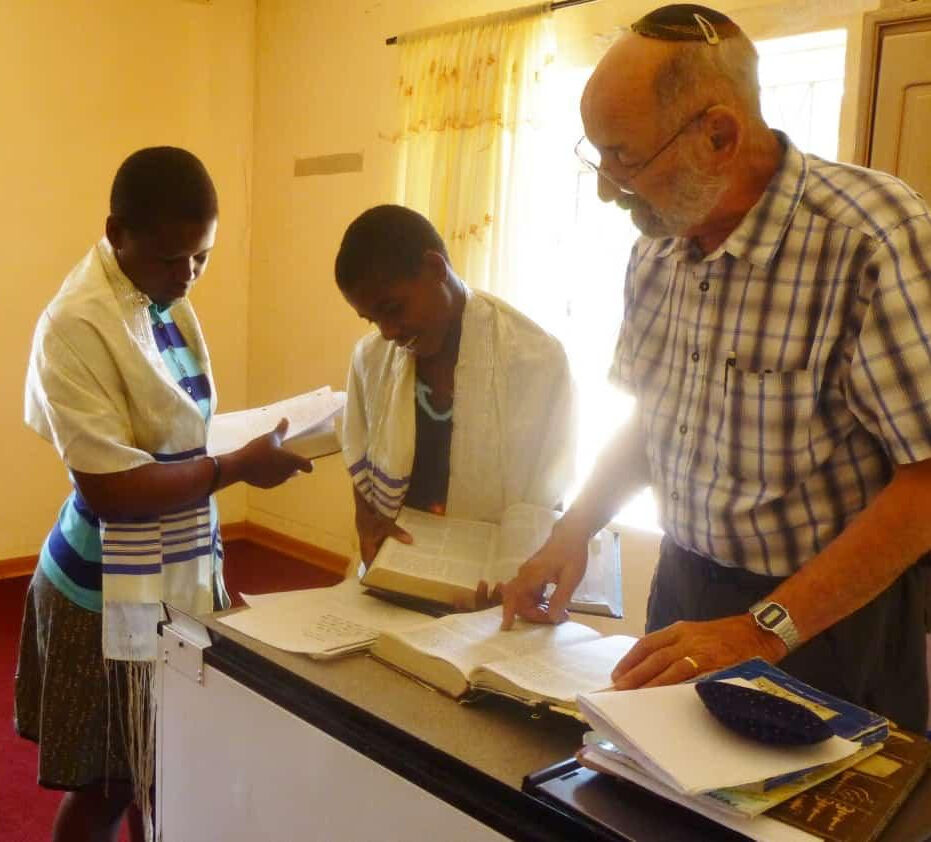 The entire Kulanu community is deeply saddened by the passing of Mordy Feinberg. He, and his wife Mickey, volunteered for many years around the globe and he was very connected with the Lemba Jewish community in Zimbabwe. This photo shows Mordy teaching Bat Mitzvah students at the Harare Lemba Synagogue.
